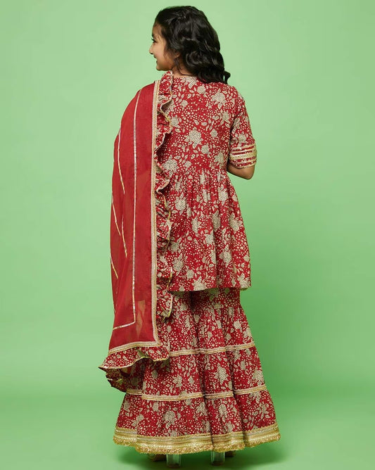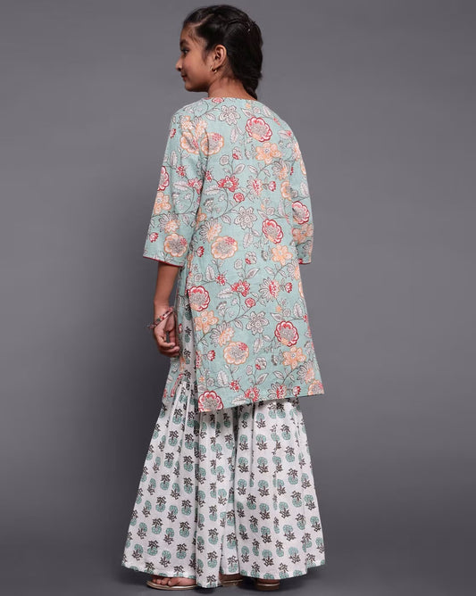 Floral Kurta & Sharara Bottom - 2 Pc Set