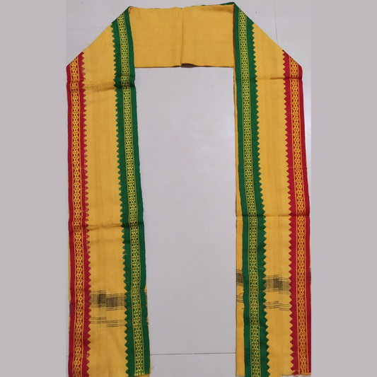 Ganga Jamuna Border Gamchas / Angavastram - 2Pcs Set (Yellow & Khaki)