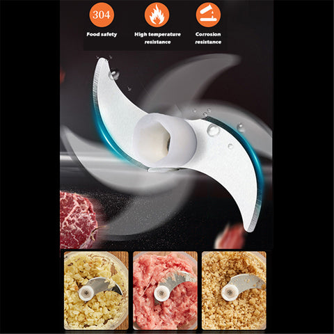 The sharp blades of the garlic chopper are quick to chop garlic, seasoning, nuts, vegetables, meat, ice cubes and more, perfect for small foods. You can use it for cooking, baby food supplements, smoothie drinks.